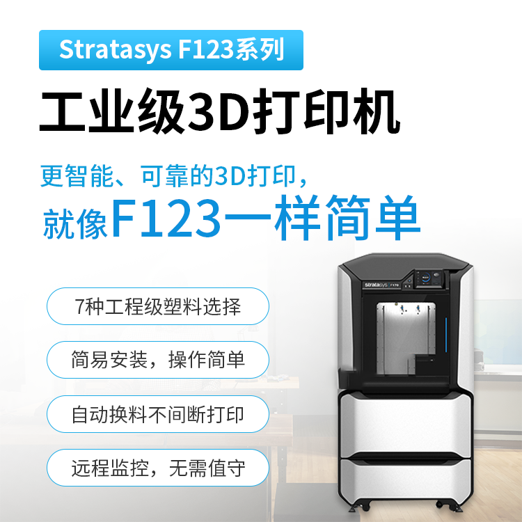 Stratasys FDM3D打印機F123系列3d打印機,更智能更高效,3d打印從沒有如此簡單,輕輕松松便可以實現(xiàn)連續(xù)性的工業(yè)級別生產(chǎn)制造,構(gòu)件種類繁多且精密的零件器械,真正意義上達到數(shù)字化制造,一體化的成型的現(xiàn)代化制造業(yè)領(lǐng)先水準。